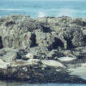 Seals resting on the sands and rocks of Strawberry Hill.