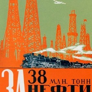 A poster dedicated to the Soviet oil industry. Caption reads, "Za 38 mln. tonn nefti s gazom v 1941 godu! / За 38 млн. тонн нефти с газом в 1941 году!", meaning, "Let's produce 38 million tons of oil and natural gas in 1941!". [Description English/roman)]