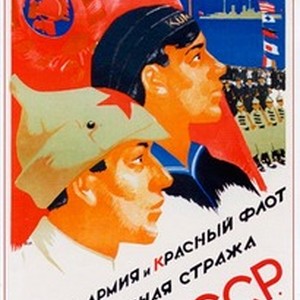 A poster dedicated to the Red Army and Red Navy. Caption read, "Krasnaia Amiia i Krasnyi Flot -- nadezhnaia strazha SSSR / Красная Армия и Красный Флот — надежная стража СССР", meaning, "The Red Army and Red Navy are the robust defenders of the USSR". [Description English/roman)]