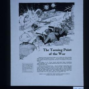 The turning point of the war. American boys faced the bridge over which the Hun hordes tried to pass at Chateau-Thierry! American shells bought with your Liberty bonds stopped the advance. ... Buy Liberty bonds till your conscience tells you you have done all you honestly can