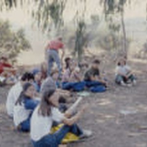 Lab IV students at a lecture under the trees at Bernard Field Station.