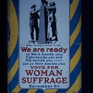 We are ready to work beside you, fight beside you and die beside you - Let us vote beside you. Vote for woman suffrage. November 6th