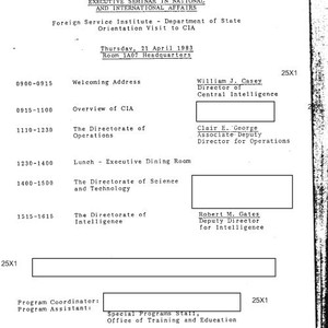 Schedule for executive seminar in national and international affairs