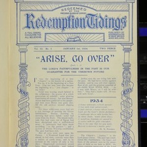 Issued fortnightly (every two weeks). "A full gospel magazine for all believers" -- subtitle. Includes Missionary supplement to Redemption tidings (1 Jan. - 15 Apr. 1934) and Tidings from our missionaries (1 May - 15 Dec. 1934) in each issue. [Description English/roman)]
