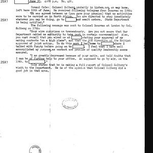 Image / Message regarding Solborg visit and communications with William J. Donovan, with attached …