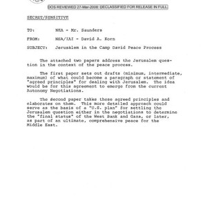 Image / David A. Korn memo regarding Jerusalem in the Camp David Peace process, …