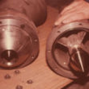 Hand grips one of two machine parts.