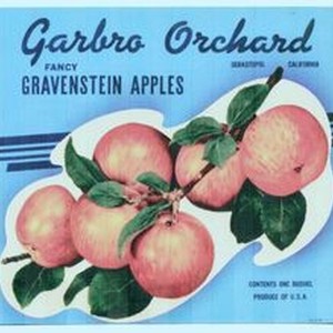 Photo--color: Apple box label of Garbro Orchard, Fancy Gravenstein apples