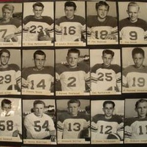 Photo--Black and white: Analy High School Tigers Football, 1953. Individual photos: Top row R-L: Reynolds, David Warburton, Doug McAlvain, Louis Haddock, Jim Druck, Ron Middle row: Allen, Richard Wyatt, Jimmie Freimund, Jeremy Warburton, Ken Golsalves, Raymond. Bottom row: Haywood, Larry Eldridge, Barry Holley, Richard Baldonado, Duane Langford, Richard.