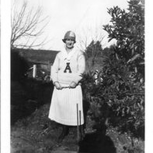 Photo--black and white: Ramona Baker in Analy High School sweater--possibly cheerleader uniform. This same picture is seen in the 1924 Analy yearbook the Azalea.