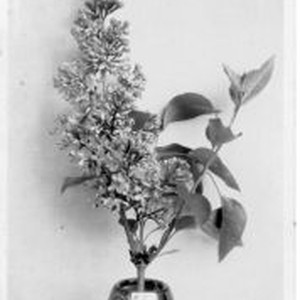 Photo--black and white: A Burbank lilac seedling in a vase. about 1928.