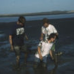 Students have a good time looking for clams in the mud at the Morro Bay tidal flats.