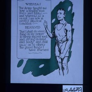 Whereas: The army taught me how a healthy man feels and thinks, and whereas, as a result, I am now in perfect physical condition. Resolved: That I shall do everything in my power to keep myself well and strong in mind and body, and shall pass on to others the good things I have learned