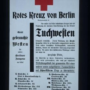 Rotes Kreuz von Berlin. ... Fur unsere im Felde Krieger sind als Erganzung der warmen Unterkleidung fur den Winter Tuchwesten ... enwunscht