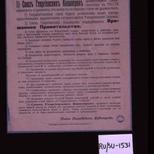 Image / Soiuz Georgievskikh Kavalerov privetstvuet sovershivshiisia v ROSSII perevorot i priznaet, chto vozvrata …