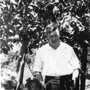 Ludford W. Elvy under an apple tree with his daughters Harriet (l) and Wilma.