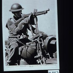 The fighting Scotsman, 1941. With kilt and bagpipes discarded, the modern Gordon Highlander is trained in the combined use of motor-cycle and tommy gun