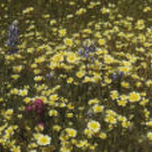 Mix of pink, purple, and yellow and white flowers in bloom.