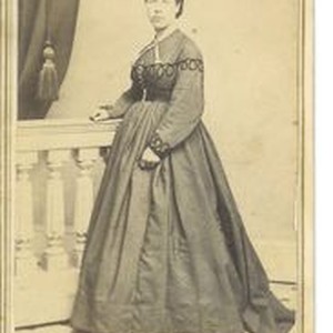 Photo--Sepia Carte de visite: Elizabeth Ann Gilliam Crow, daughter of Mitchell and Henrietta (Taylor) Gilliam, about 1865. The Gilliam family were early pioneers to Green Valley (Graton). Gilliam, Crow and Whiteside branches.