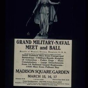 Grand Military - Naval Meet and Ball. Benefit of Women's Oversea Hospitals, U.S.A. The American Red Cross has given $35,000 toward the equipment of this hospital. 5000 enlisted men from camps and battleships - 7 military bands - Knights of Columbus - police dogs - state constabulary - large detachments from 16 National Guard Regiments - 1000 men from Pelham Bay