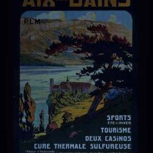 Aix-les-Bains. PLM. Sports ete et hiver. Tourisme. Deux casinos. Cure thermale sulfureuse. L'abbaye d'Hautecombe - vue sur le lac du Bourget - Aix-les-Bains - et le mont Revard