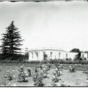 An early view of the rose garden and bowling alley (now the Tea Room). The label that accompanies this photo in the album reads "No. 84 Billiard, pool and bowling building. About 1911."