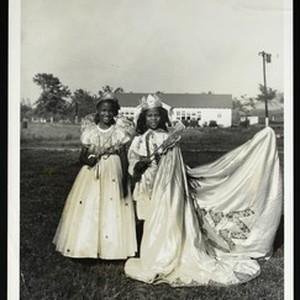 Photograph of two children dressed in fanciful costumes, for May Day?, [s.d.]. [Description English/roman)]