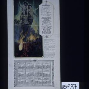 "We shall not sleep ..." This beautiful lyric of the war was written by Lieutenant Colonel John McCrae ... In behalf of the brave men ... this calendar is presented with the compliments of Bauer & Black