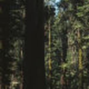 A massive sequoia trunk along the Hazelwood Trail in Sequoia National Park.