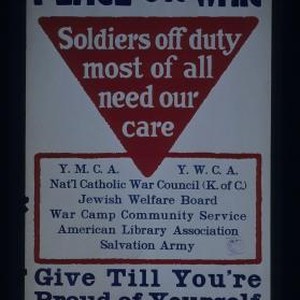 Peace or war. Soldiers off duty most of all need our care ... Give till you're proud of yourself