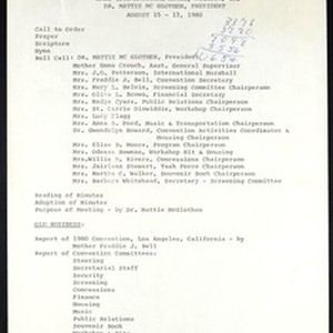 Annual post-convention evaluation meeting minutes, Women's International Convention, Church of God in Christ, Omni International Hotel, Atlanta, California, 1980 August 15-17. [Description English/roman)]