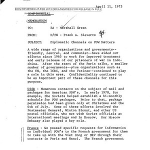 Image / Frank A. Sieverts memo to Marshall Green re. diplomatic channels on POW …