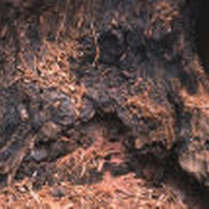 Carpenter ant activity in fire score on living, large sequoia in Giant Forest.
