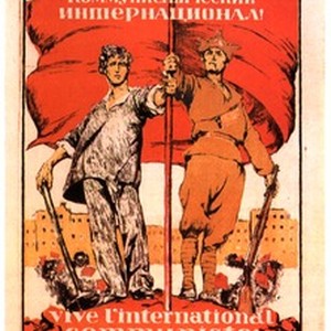 A poster dedicated to the Third International (aka Communist International or Comintern). Captions read, "Da zdravstvuet Kommunisticheskii Internatsional! / Да здравствует Коммунистический Интернационал!" and "vive l'international communiste!", meaning, "Long live the Communist International!". [Description English/roman)]