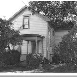Photo, black and white: Sebastopol house at 7225-27-29 Wilton Avenue a Greek Revival built in the late 1800s in the Morris Addition. House photographed in 1993 by Evelyn McClure for her book "Sebastopol, California : History, Homes and People."