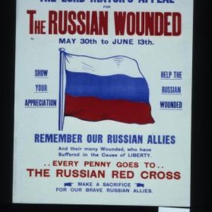The Lord Mayor's appeal for the Russian Wounded ... Show your appreciation, help the Russian wounded. Remember our Russian allies and their many wounded, who have suffered in the cause of liberty. Every penny goes to the Russian Red Cross. Make a sacrifice for our brave Russian Allies