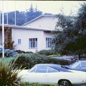 Slide, color transparency: The Vets Building on High Street in Sebastopol, 1970.