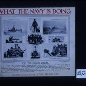 What the Navy is doing. Oh, you sub-chasers. In foul weather or fair you have kept on the job. Convoying the coastwise, watching khaki laden transports, in contact with the enemy ... Because of sea power victory became ours