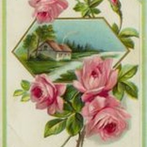 Postcard--colored picture: "Best Wishes" greeting with roses around picture of house in country. Handwritten message on back to Mary Guisler from Vernita. Dated Sept 15, 1913. Postmarked Graton with 1 cent stamp.