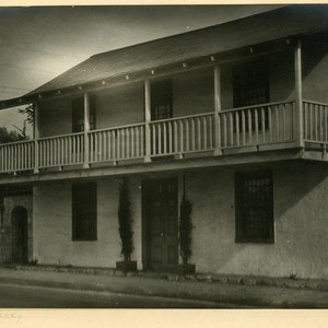 Adobe, Monterey, California: house elevation w/full length balcony [Old Whaling Station, 391 Decatur St.].