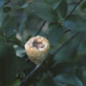 Close-up of a black-chinned hummingbird's nest with eggs in it.