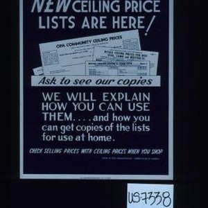 New ceiling price lists are here! Ask to see our copies. We will explain how you can use them...and how you can get copies of the lists for use at home. Check selling prices with ceiling prices when you shop