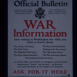 Read the official bulletin published daily under order of the President of the United States by Committee on Public Information ... War information. Save writing to Washington for what you want to know about ... ask for it here