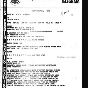 Image / Secretary of state cable to American embassy, Rio de Janeiro regarding Vesco …