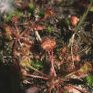 Several roundleaf sundew plants growing on moist ground.