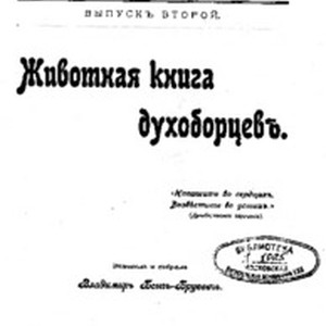 (Vladimir Bontch-Brouèvitch. Materiaux pour servir à l'histoire des sectes russes, livraison 2) = Vladimir Bonch'-Bruyevich. Zhivotnaya kniga dukhobortsev'. (Materíaly n' istoríi i izucheníyu russkago sektantstva i raskola, vypusk 2). S.-Peterburg', Rossiya: [Zhizn' i znanie] B.M. Vol'f [tipograf], 1909. = Vladimir Bonch-Bruyevich. Living Book duhobortsev. (Materіals for the history and study of Russian sectarianism and division, number 2). St. Petersburg, Russia: [Life and Knowledge] B.M. Wolf [printer], 1909. [Description English/roman)] Владимир Бончь-Бруевич. Животная книга духоборцевь. (Матеріалы к исторіи и изученію русскаго сектантства и раскола, Выпуск 2). С.-Петербург, Россия: [Жизнь и знаніе] Б.М. Вольф [типограф], 1909. [Description (original non-English/roman language/script)]