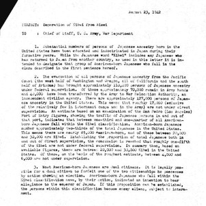 Image / J. L. DeWitt memo regarding separation of Kibei from Nisei