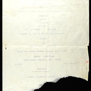 Programme for the dedication of the Lott & Crouch building, Church of God in Christ Mission School, Tugbake, Cape Palmas, Liberia, West Africa, 1965 August 15. Includes pages 2-6 of a more detailed program, plus another 2-page program. [Description English/roman)]