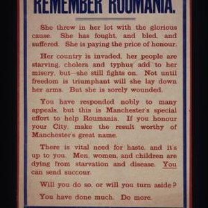 Remember Roumania. She threw in her lot with the glorious cause. She has fought, and bled, and suffered. She is paying the price of honour. Her country is invaded ... Will you do so, or will you turn aside? You have done much. Do more