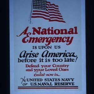 A national emergency is upon us. Arise America, before it is too late! Defend your country and your loved ones. Enlist now in the United States Navy or U.S. Naval Reserve